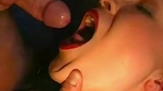 retrò bukkake porno con una bionda puttana in rosso labbro fodera
