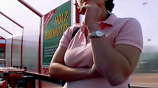 A big-boobed and horny German chick enjoys pleasing her muff on a picnic