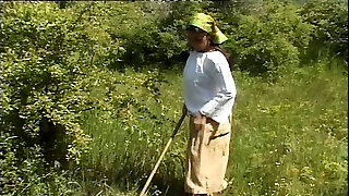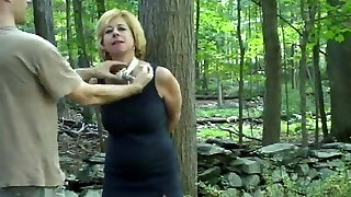 He takes a granny out into the woods and ravages her vintage pussy