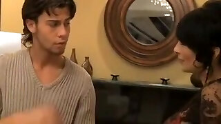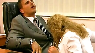 Lucky guy gets cauth by his blonde MILF manager in stocking