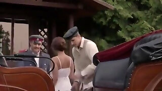 复古的黑发得到她的皮毛复盖蜜罐porked和胸部cummed