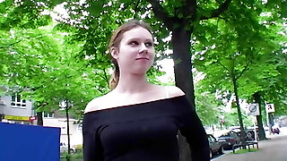 Cute German teen gets her shaved and tight pussy romped