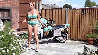 Sandy-haired Milf masturbates in retro chic lingerie seamed nylon designer stilettos